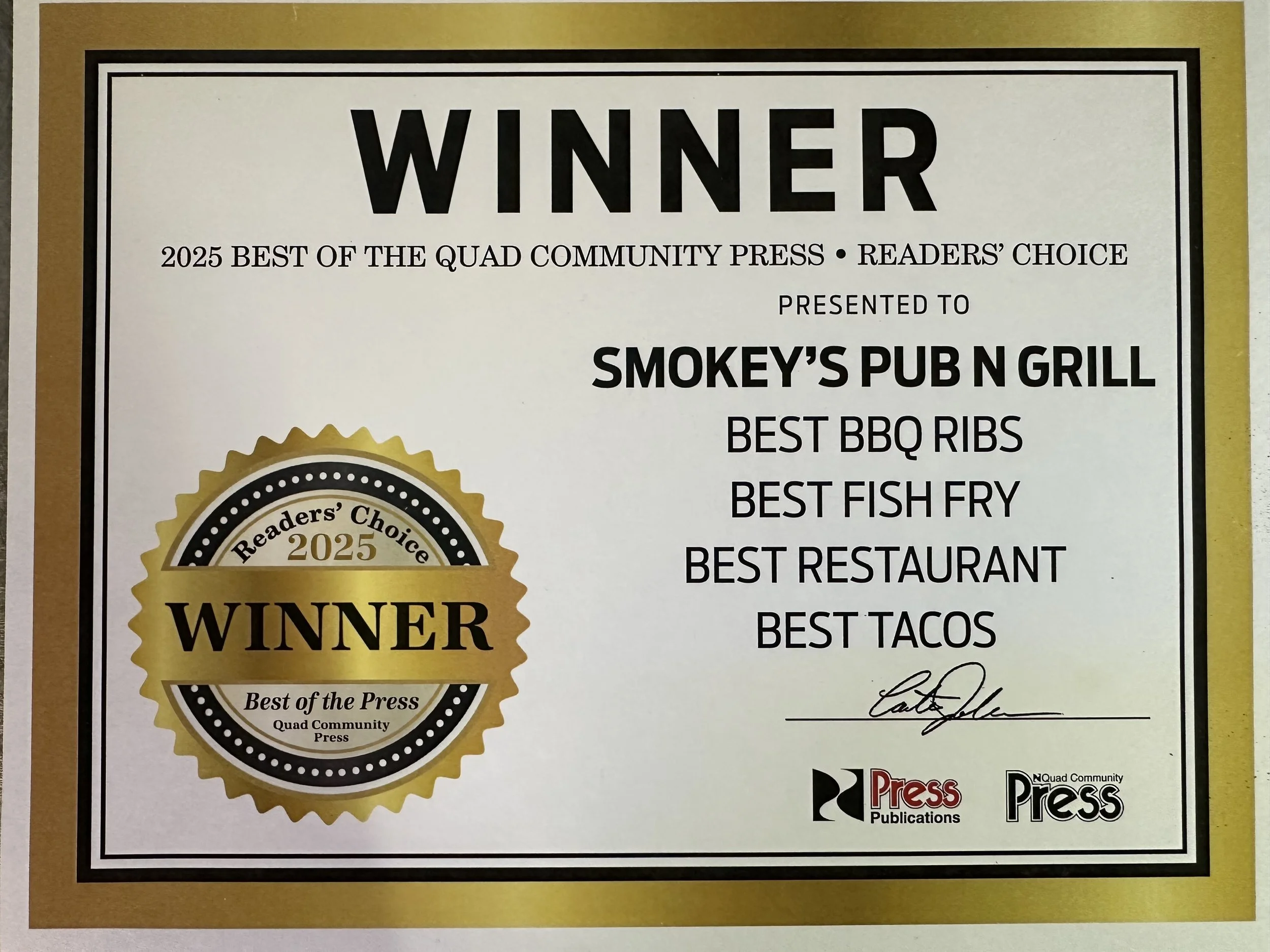 Thank you to our great customers for voting Smokey’s the 2019 Neighborhood Favorite Restaurant on Nextdoor.com! We are truly honored for this.