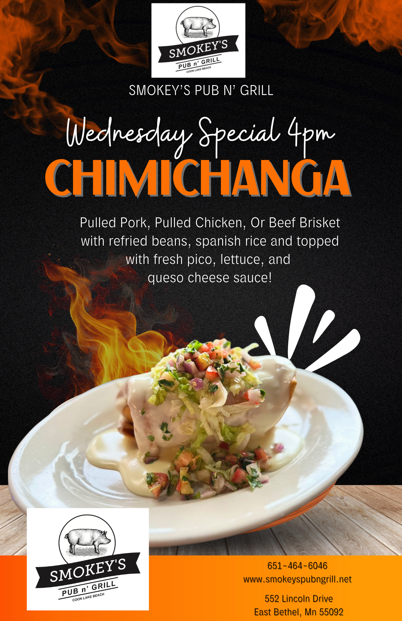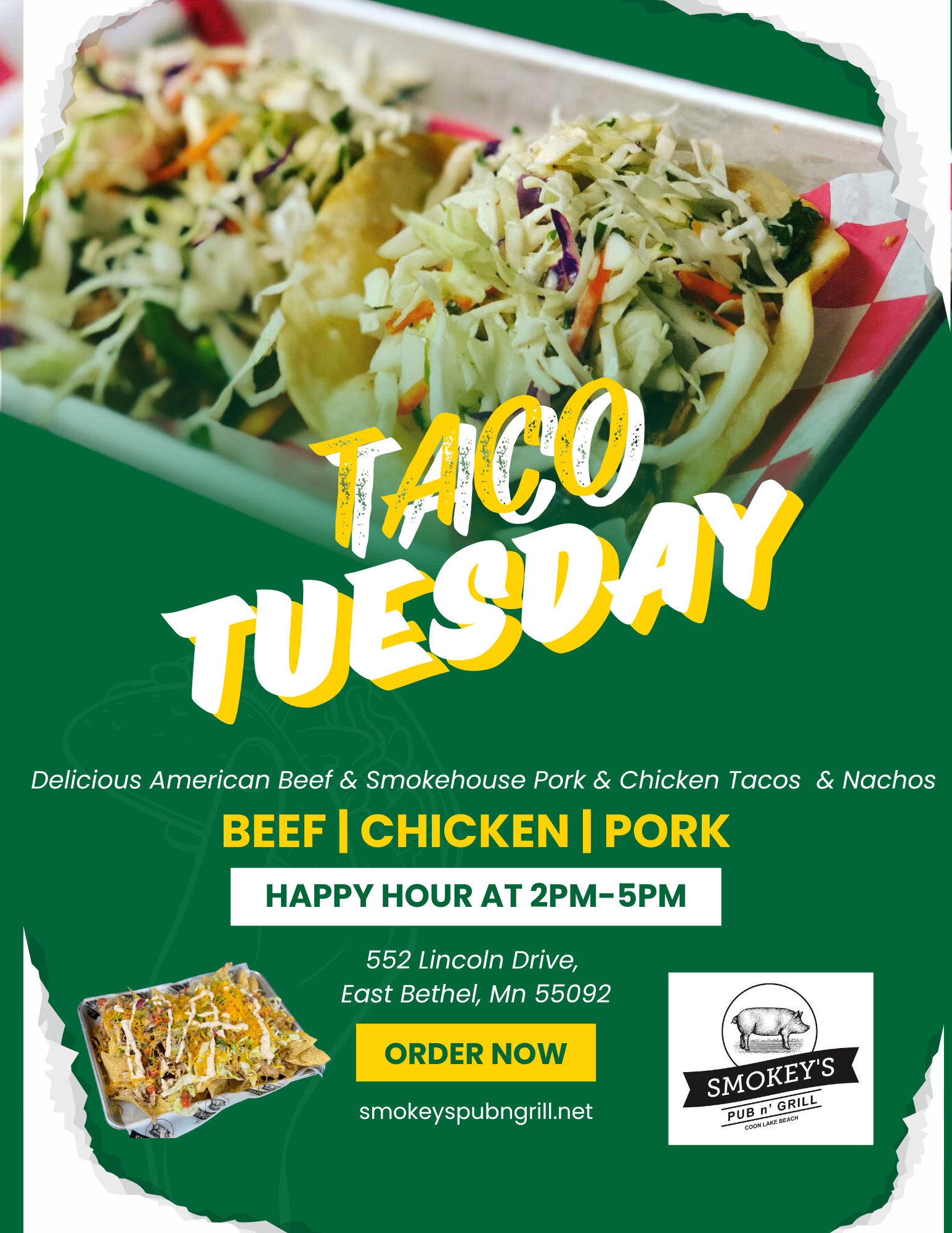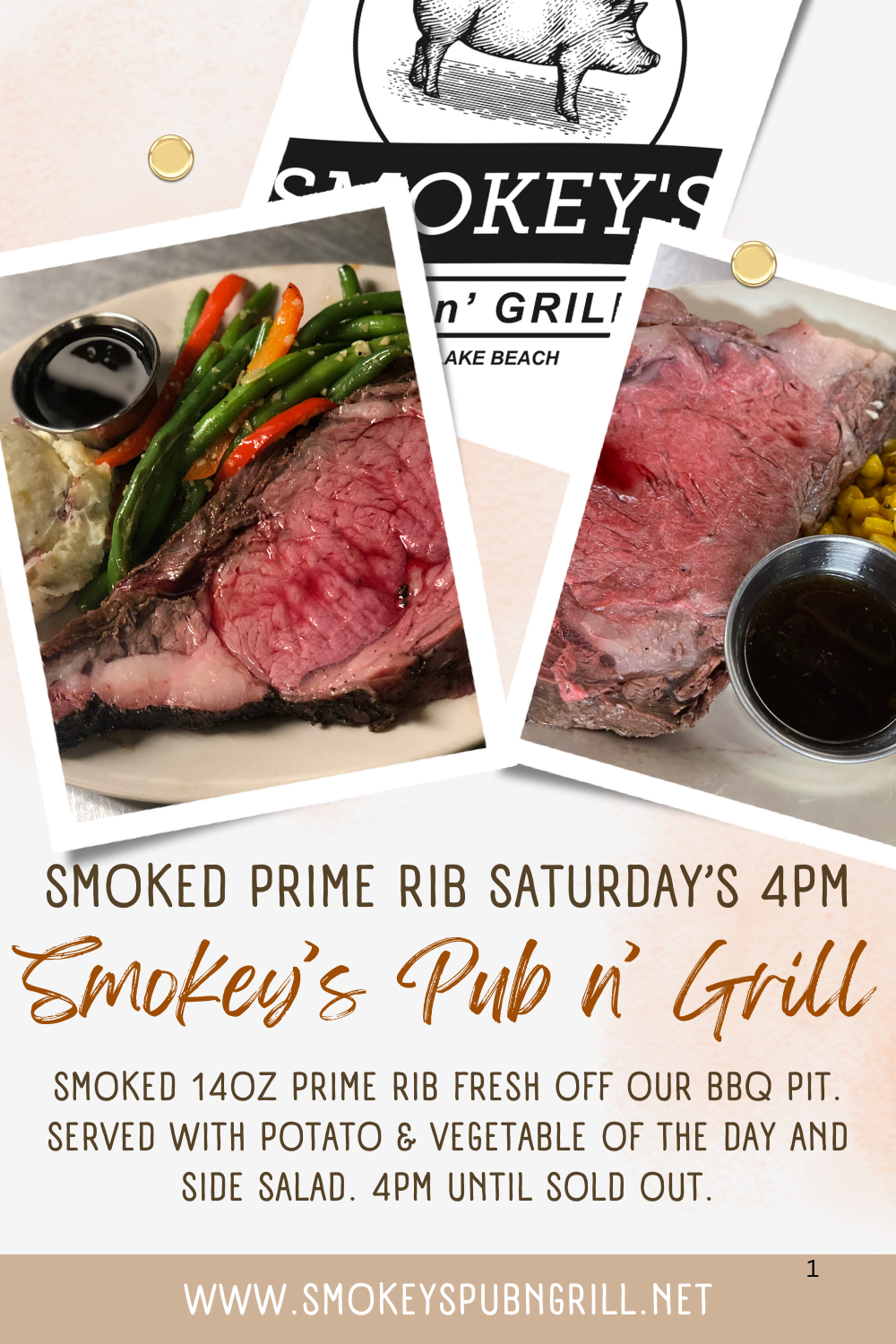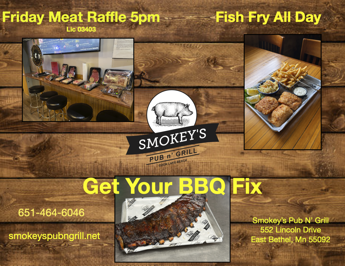 Weekly food specials and happenings at Smokey’s.